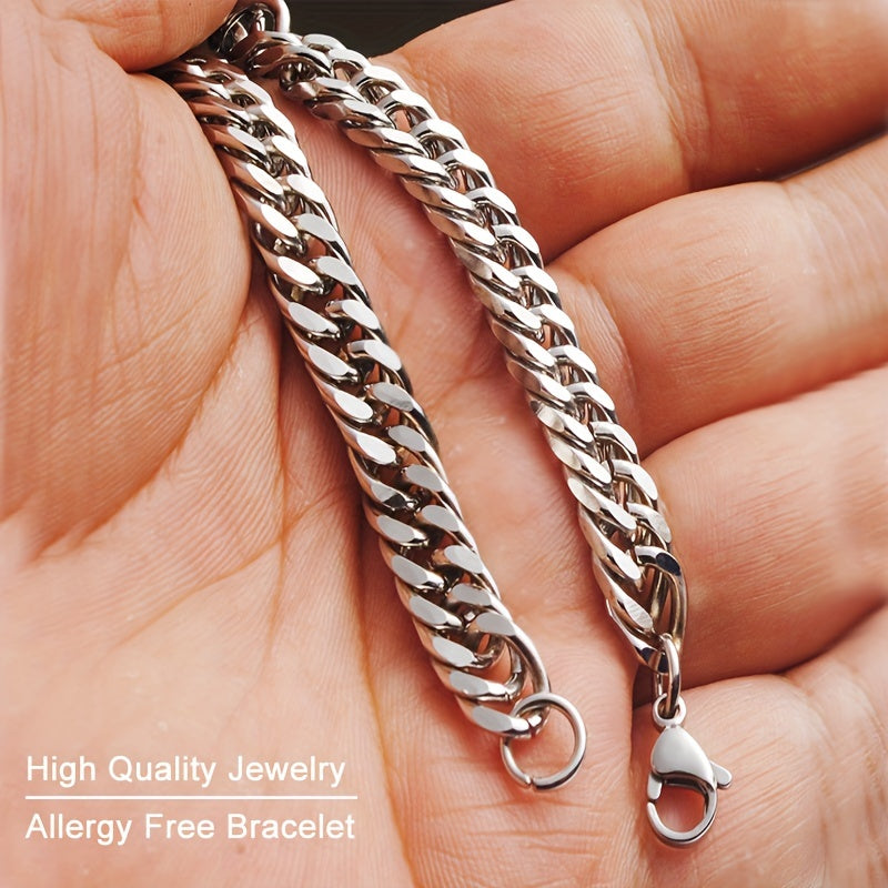 Deze moderne herenarmband met dubbele twist schakels is een stijlvolle keuze voor liefhebbers van casual en hiphop geïnspireerde mode. Vervaardigd uit roestvrij staal dat niet vervaagt en ontworpen zonder magnetische onderdelen voor langdurig comfort.
