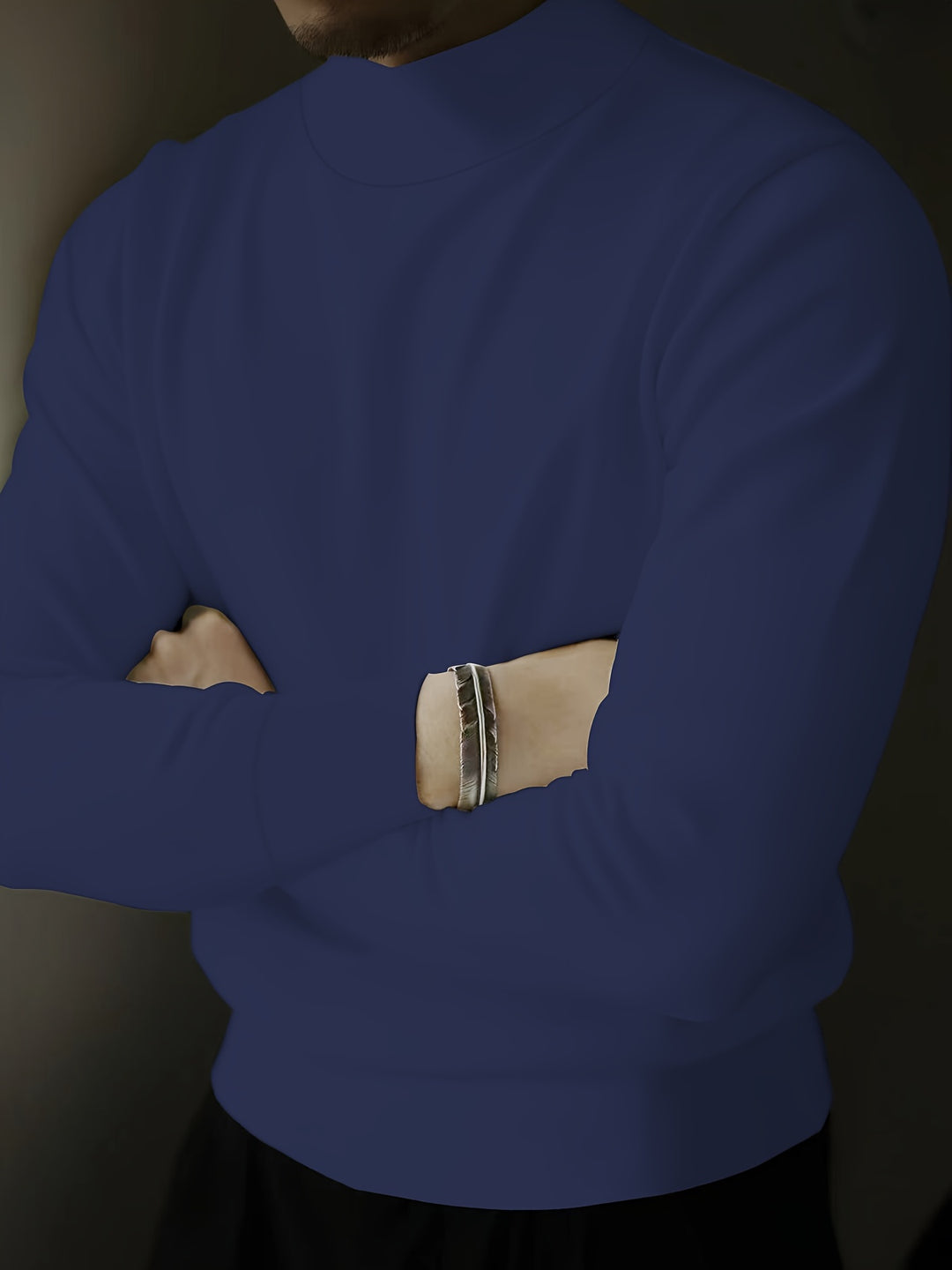 Dit modieuze heren T-shirt met lange mouwen en een opstaande kraag biedt een perfecte mix van stijl en comfort. De rekbare polyester mix zorgt voor een soepele pasvorm, terwijl de effen kleur veelzijdigheid biedt voor elke gelegenheid.