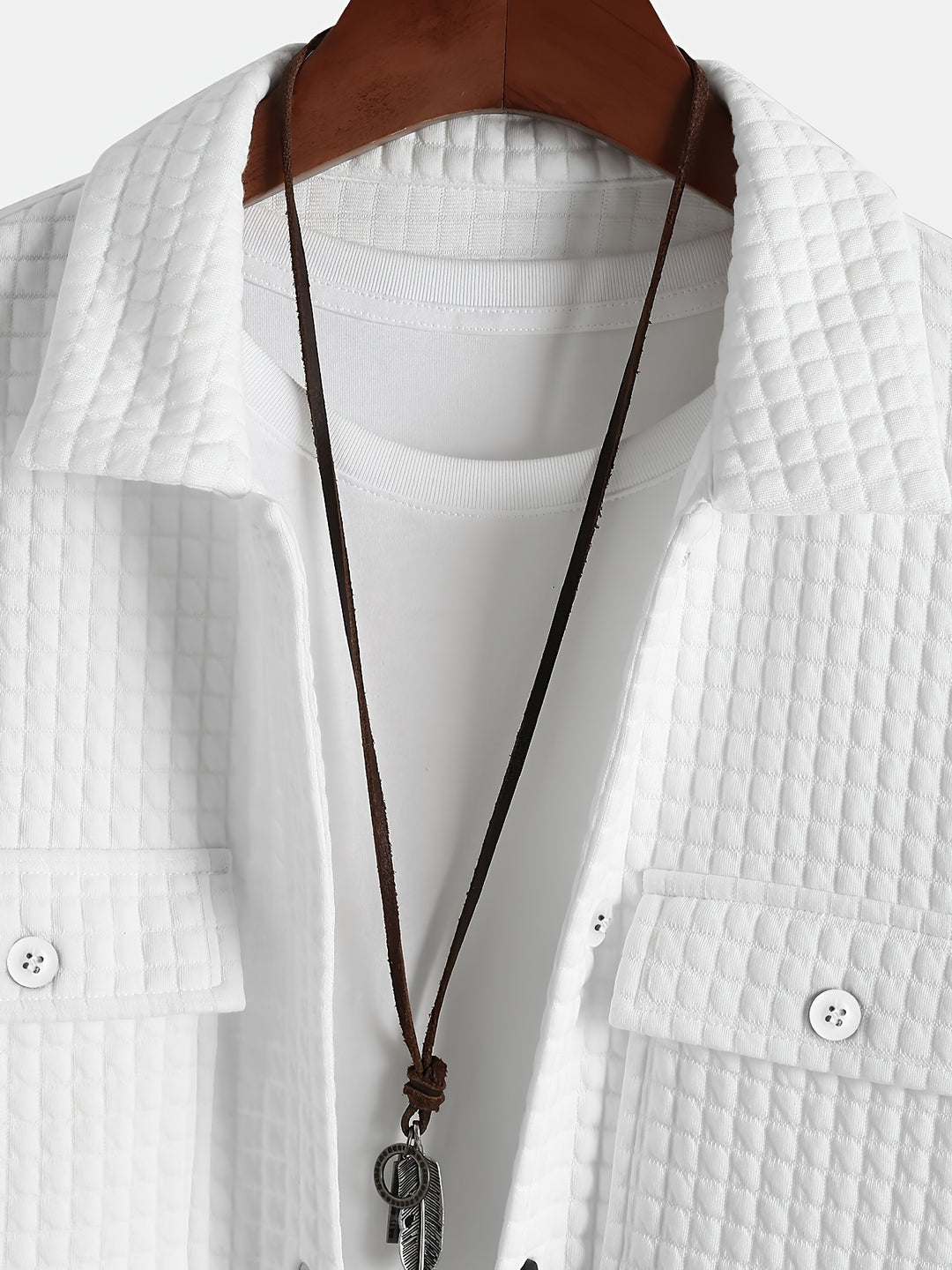 Dit stijlvolle heren overhemdjas combineert het beste van een overhemd en een jas. Met een trendy geruit design, een losse pasvorm en een comfortabele gebreide stof, is deze jas perfect voor casual en veelzijdige outfits in het tussenseizoen.