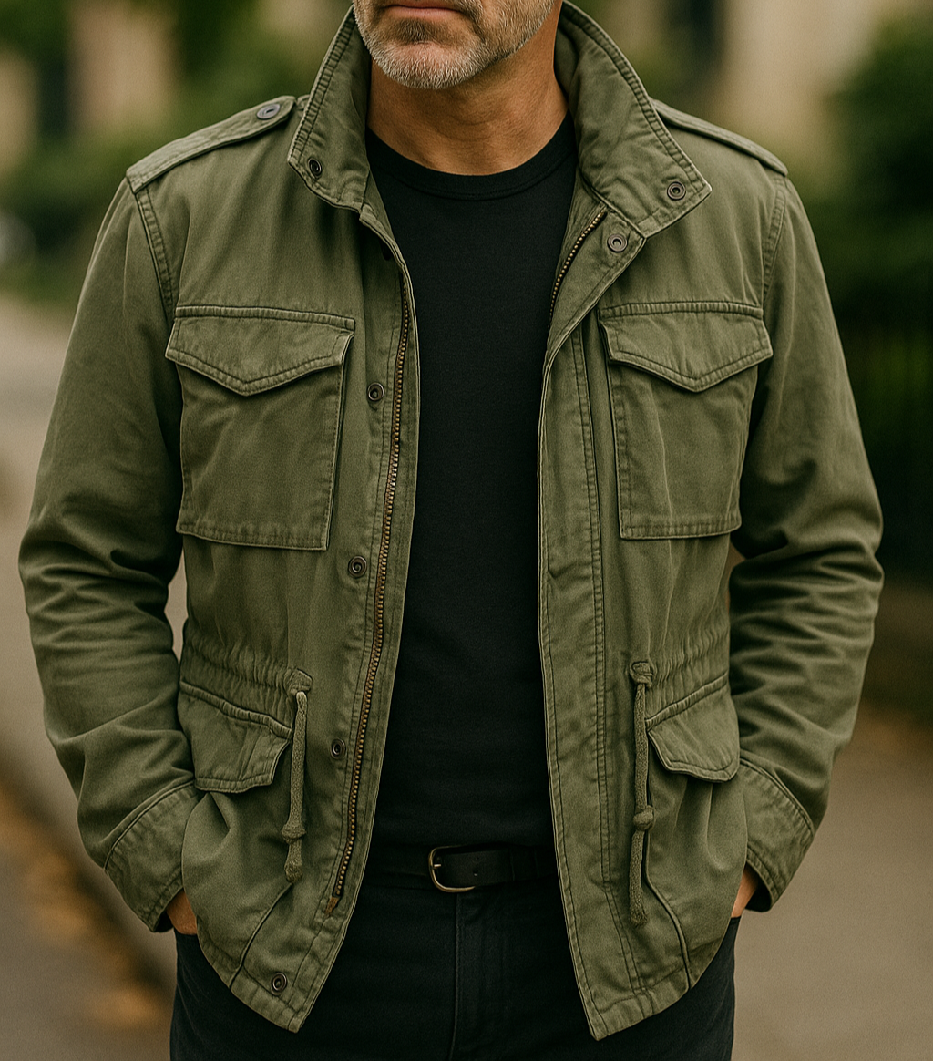 - Windbestendige buitenlaag – Gemaakt van een stevige katoen-nylon mix die bescherming biedt tegen de elementen.