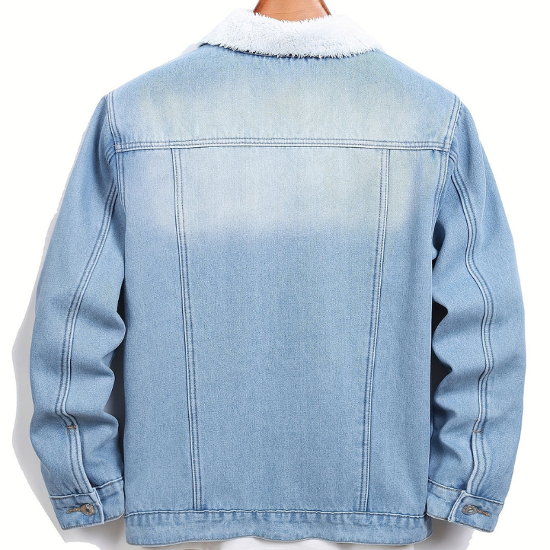 Deze heren winterjas van denim biedt warmte, comfort en een stoere look dankzij de zachte fleecevoering, knoopsluiting en praktische zakken.