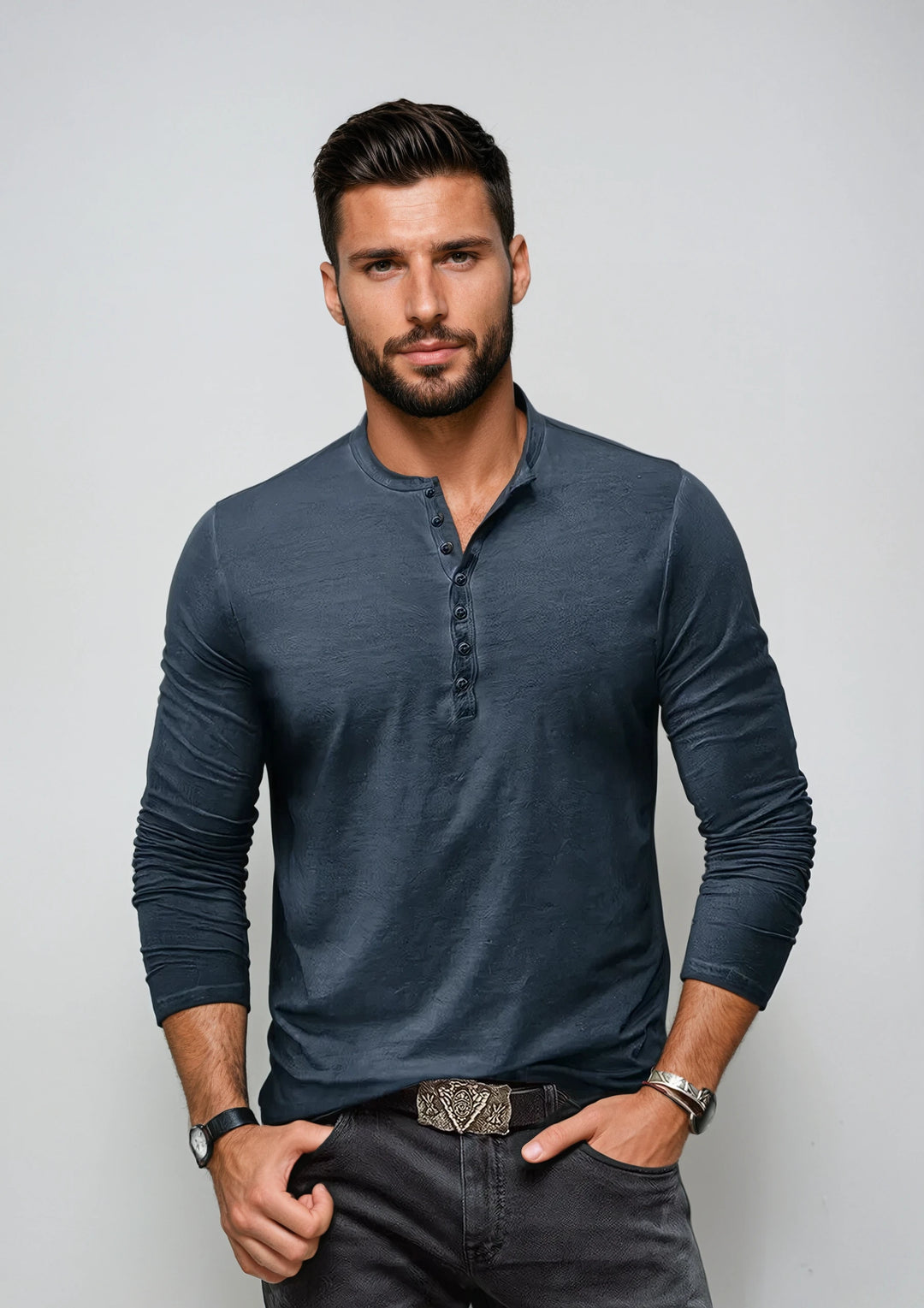 Het Adam overhemd biedt de perfecte balans tussen comfort en stijl. Het ronde halsontwerp en de lange mouwen maken het ideaal voor verschillende gelegenheden. Het tijdloze uiterlijk zorgt ervoor dat je er altijd modieus uitziet, terwijl de zachte stof de hele dag door draagcomfort biedt, ongeacht het seizoen.