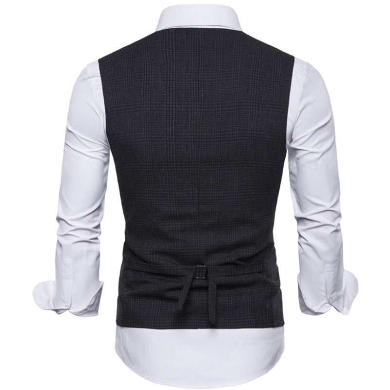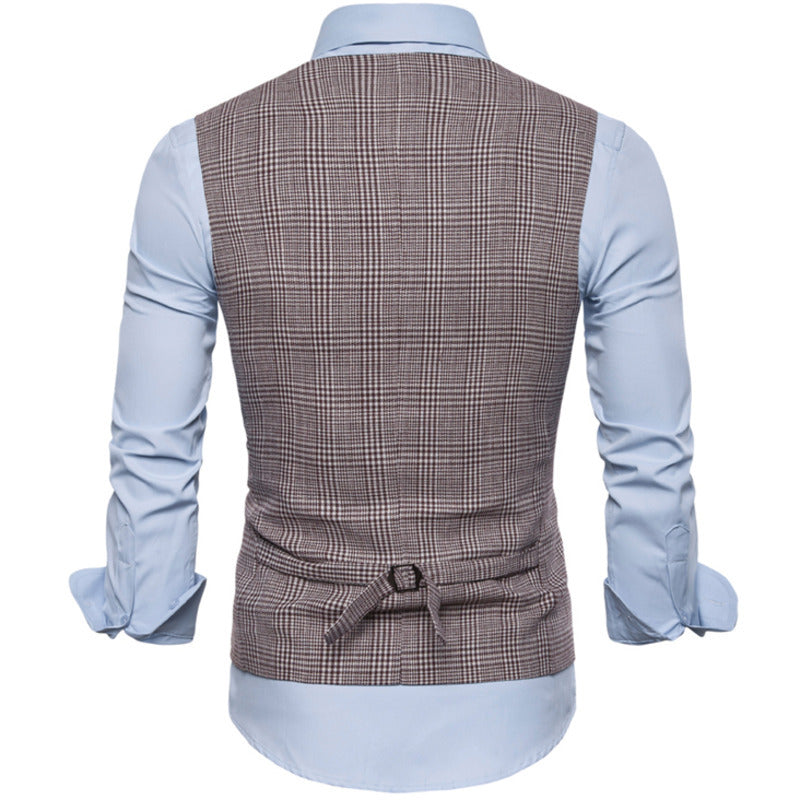 Uniek ontwerp: Het Leon vest heeft een opvallend ruitpatroon en een single-breasted sluiting, wat het een verfijnde en moderne uitstraling geeft.