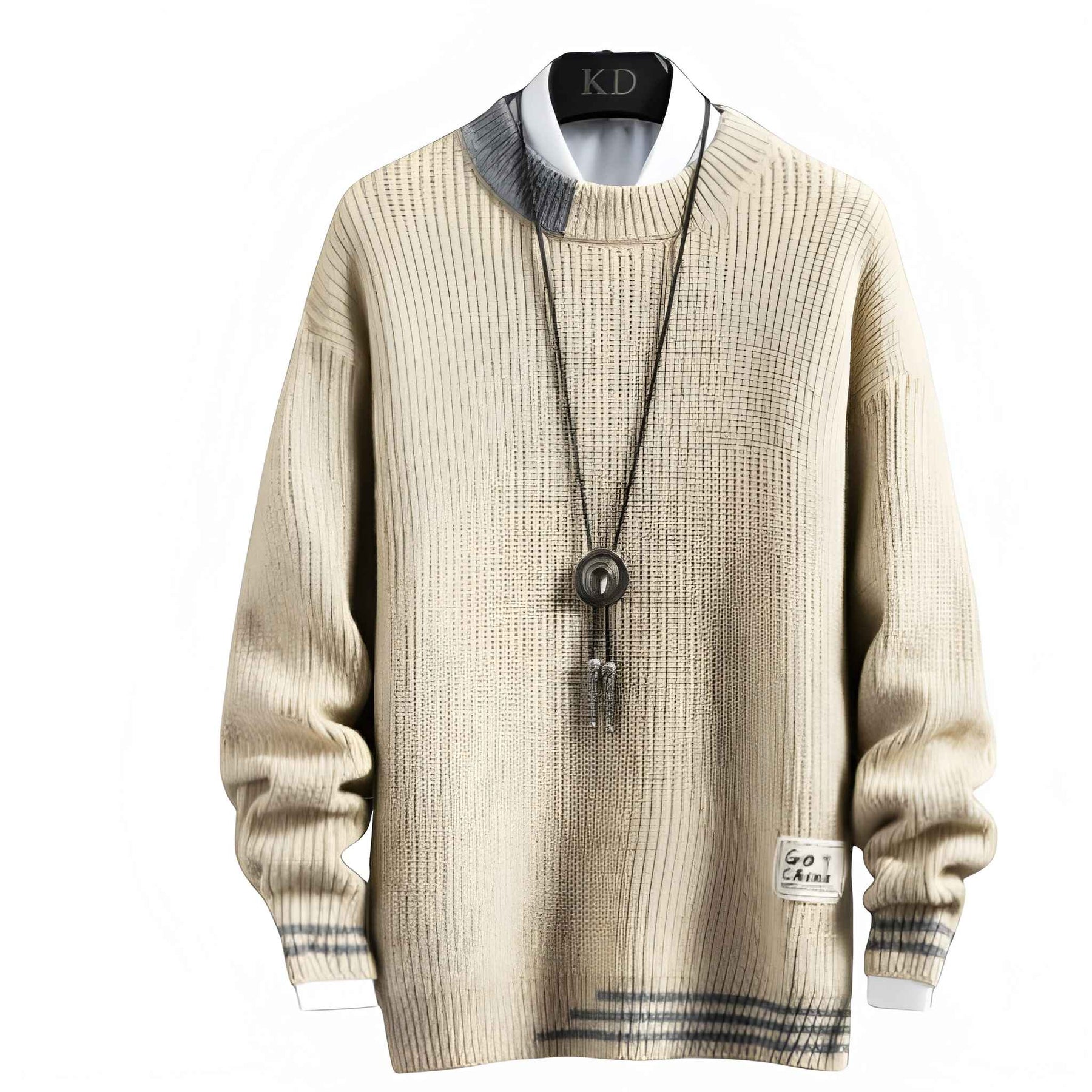 Truien Heren | Gebreide Trui met Ronde Hals & Details