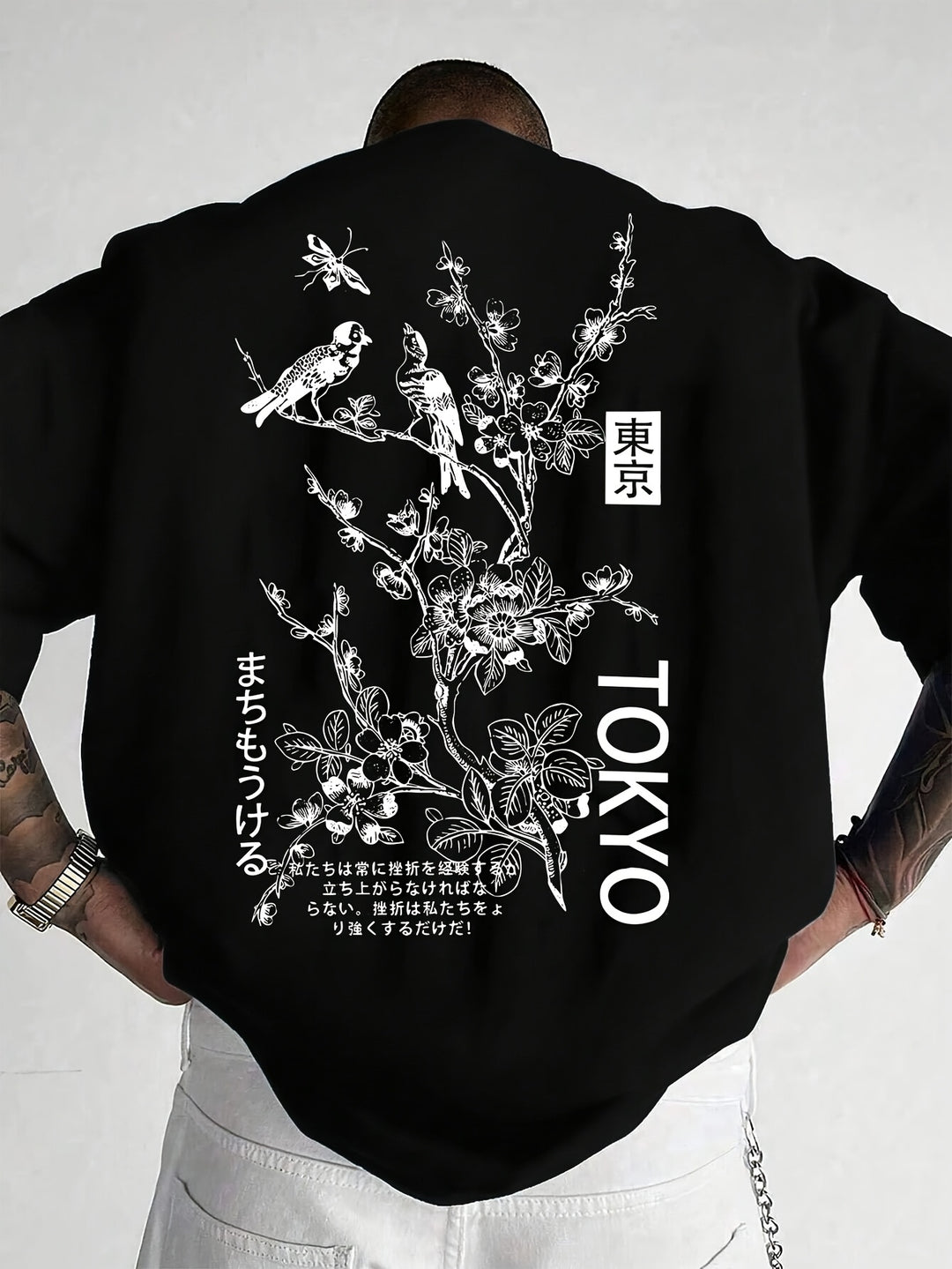 Heren Casual T-Shirt | Bloemen- & Vogelprint | Ademend Polyester | Zomer | Korte Mouwen