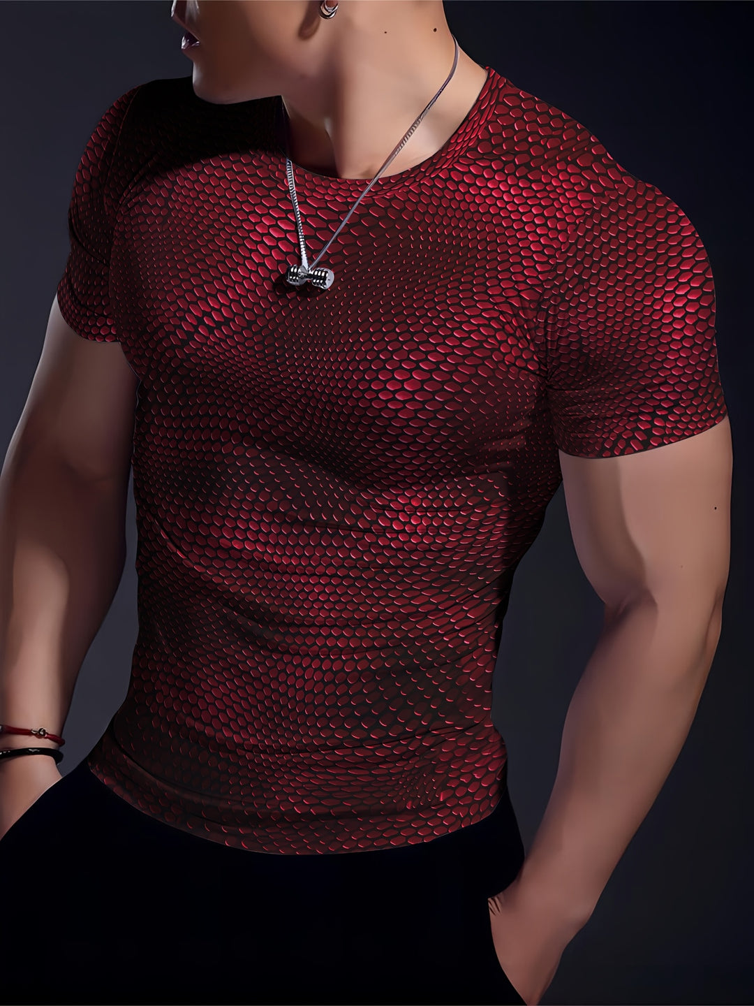Dit heren T-shirt met 3D-geometrisch patroon is speciaal ontworpen voor actieve zomerdagen. Gemaakt van een scheurvast gebreid weefsel met hoge stretch en sportieve pasvorm, is deze top perfect voor yoga, hardlopen, hiken of intensieve training. De ademende stof en moderne look maken het ook een stijlvolle keuze voor outdoor casual wear.