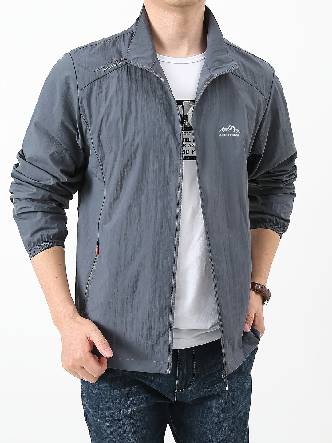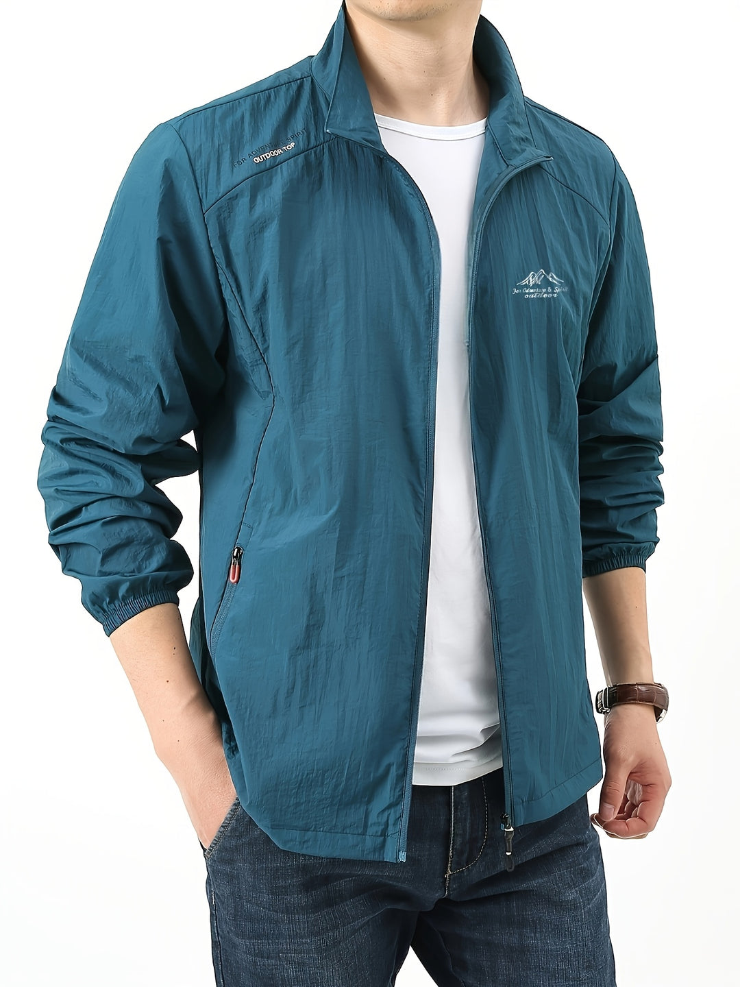 Dit tussenjas voor heren is ontworpen voor comfort en stijl tijdens warme dagen. De ademende geweven stof met zonbescherming maakt het ideaal voor casual wandelingen en weekenduitstapjes. De moderne stand-up-kraag en effen kleur geven het jack een strakke, tijdloze uitstraling.